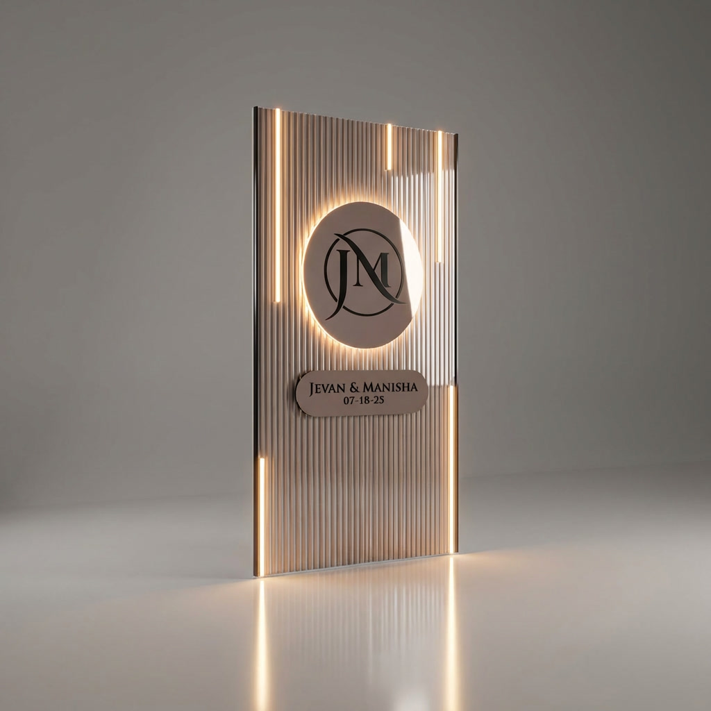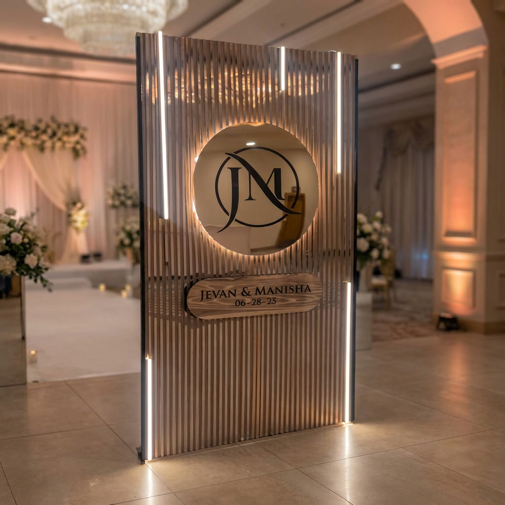 Built around a fluted centre panel with integrated LED lighting and personalised detailing, this install offers clean lines, balanced proportions and a polished finish. It is ideal for modern, minimal celebrations and clients who appreciate understated elegance.